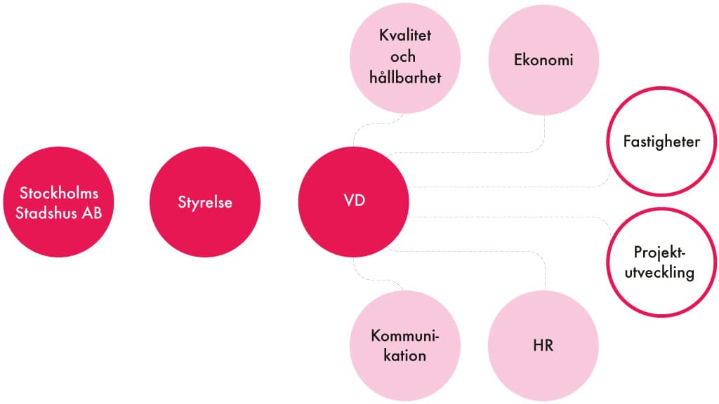 Företagsledningen består av bolagets VD och sex avdelningschefer.